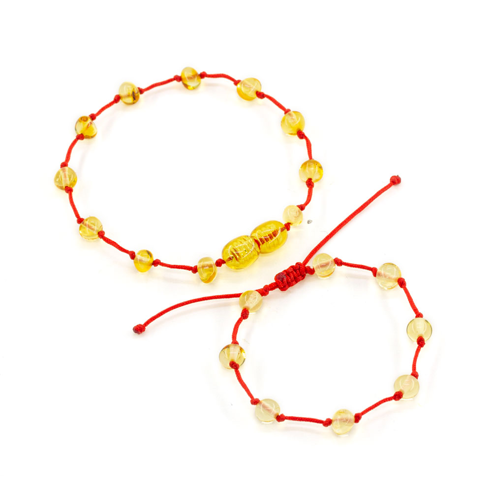 Set Brățări Copil & Adult din Chihlimbar Baltic Galben & Șnur Roșu – Beneficii și Detalii